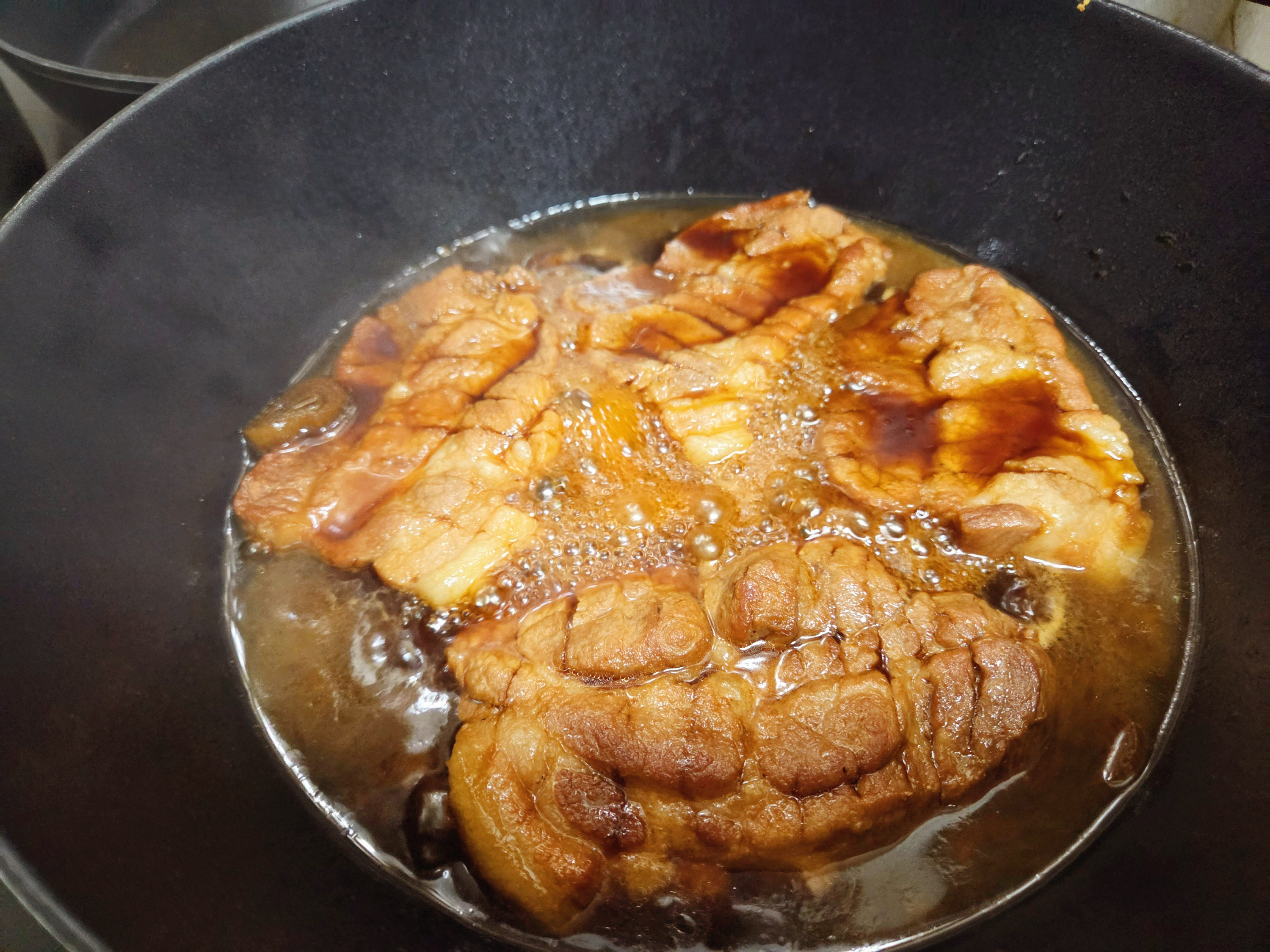 (가장 큰 고기를 가위로 잘라서 속을 확인 해 보세요, 붉다면 더 볶아주세요)