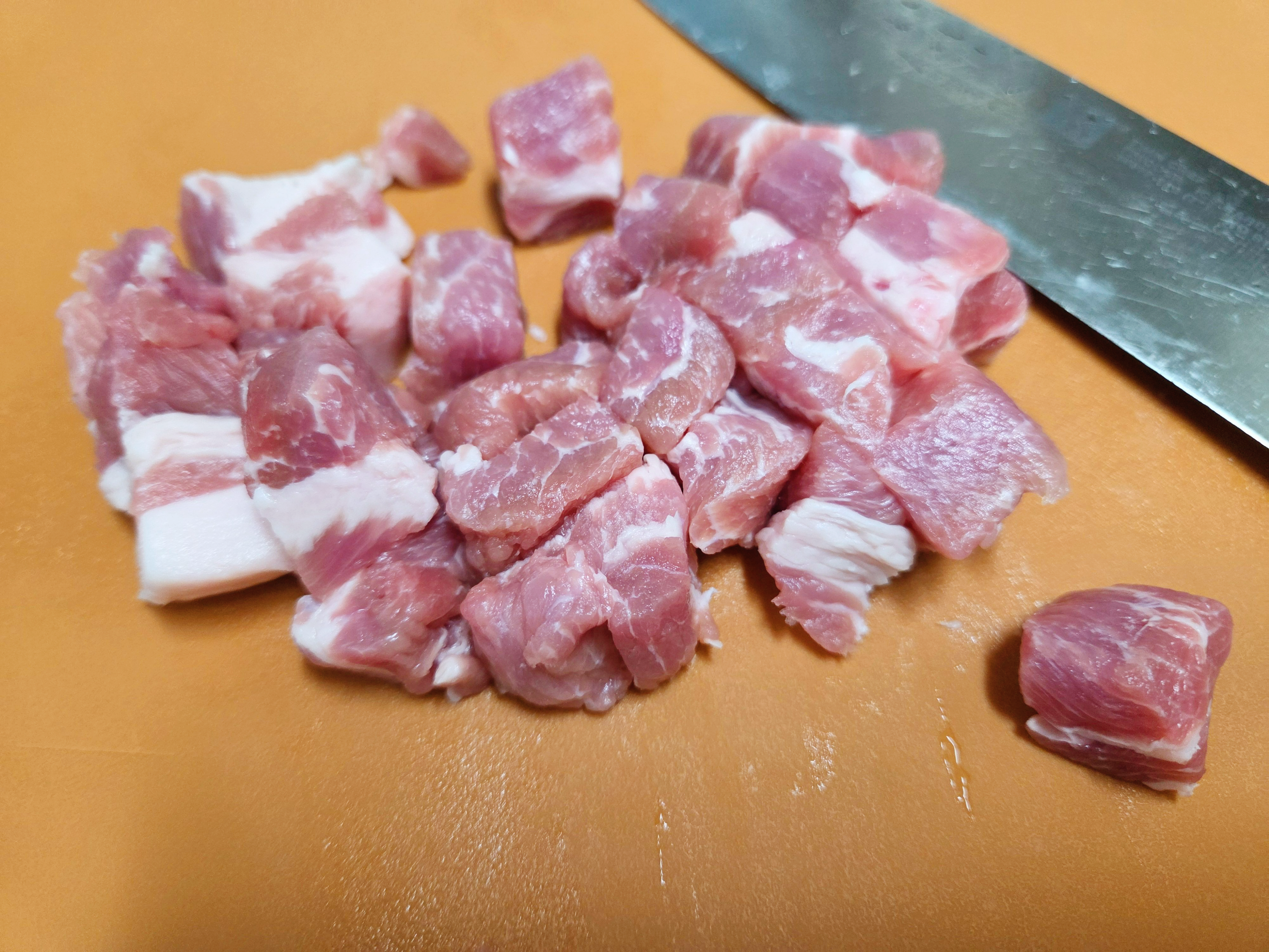 1. 돼지목살은 키친타올로 핏물 제거, 한입 크기로 썬다.