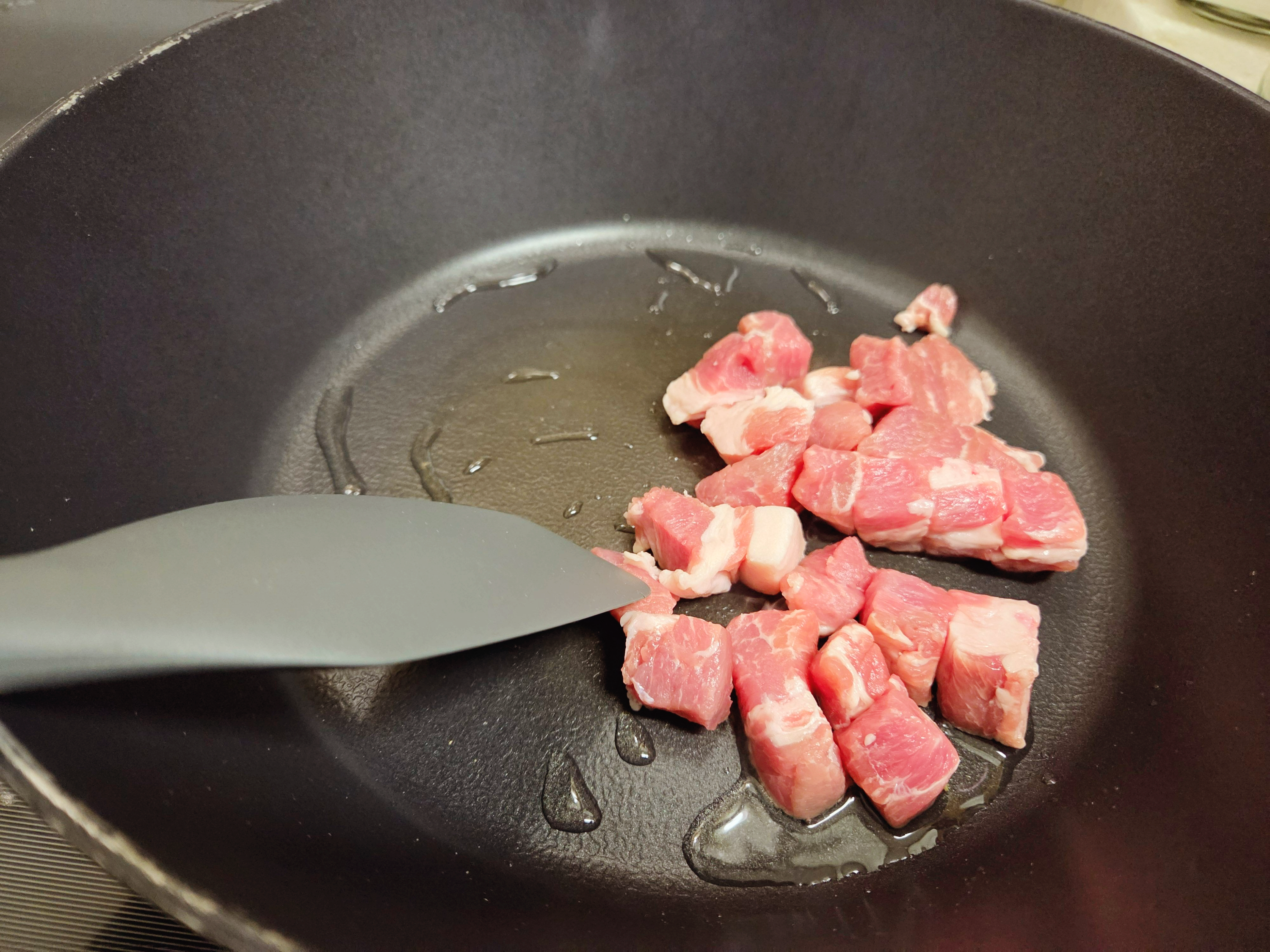 5. 돼지목살을 넣고 중불에서 볶는다.