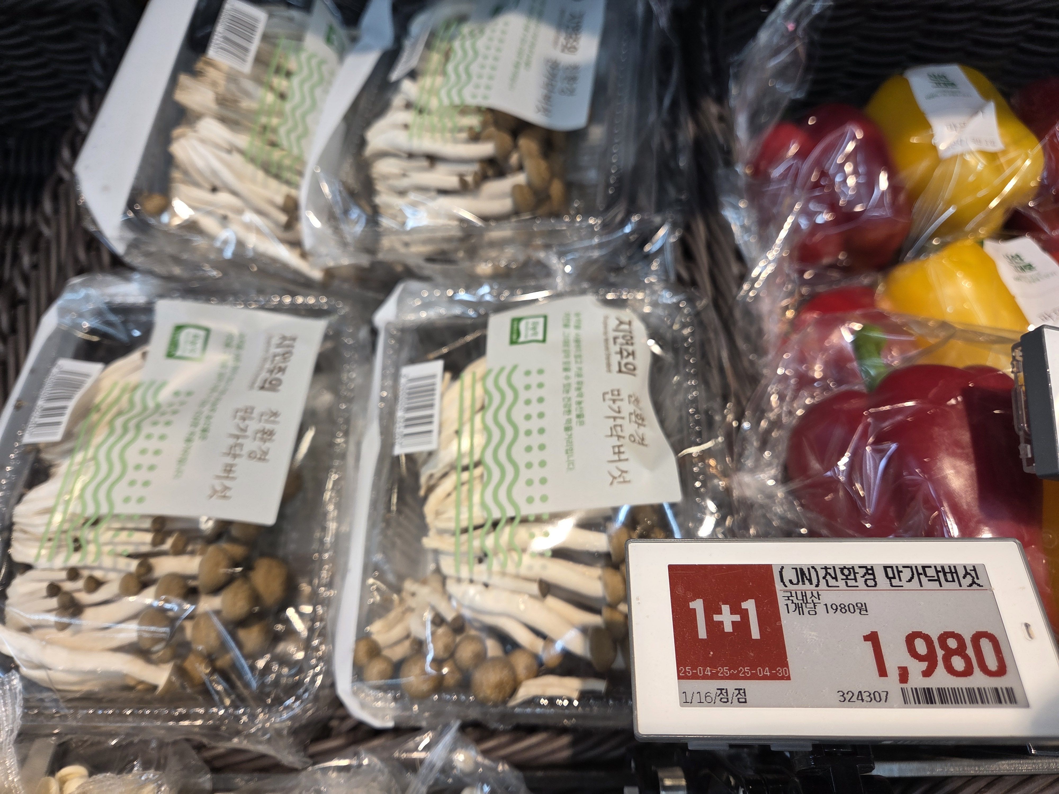 채소 코너에 가니 친환경 만가닥 버섯이 1+1 할인을 진행중었어요,