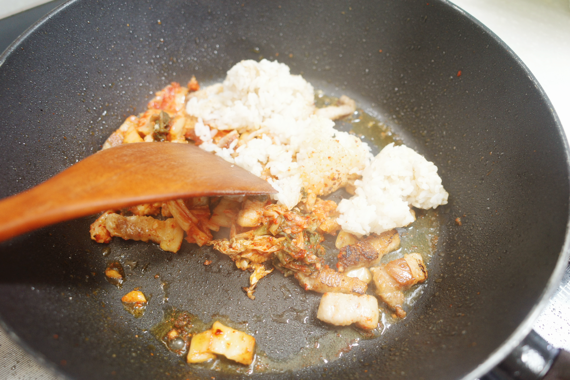 4. 밥 넣고 김치볶음밥 완성