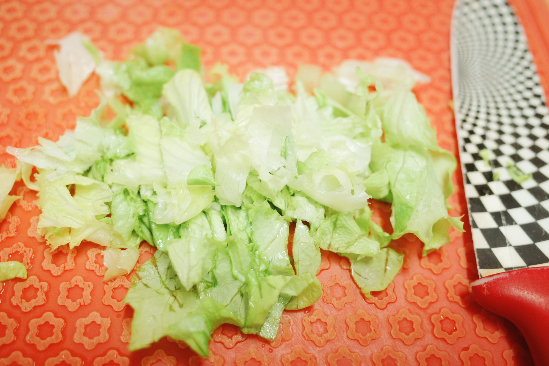 1️⃣ 양파, 당근, 오이는 곱게 채 썰고, 상추는 손바닥 크기로 잘라주세요.