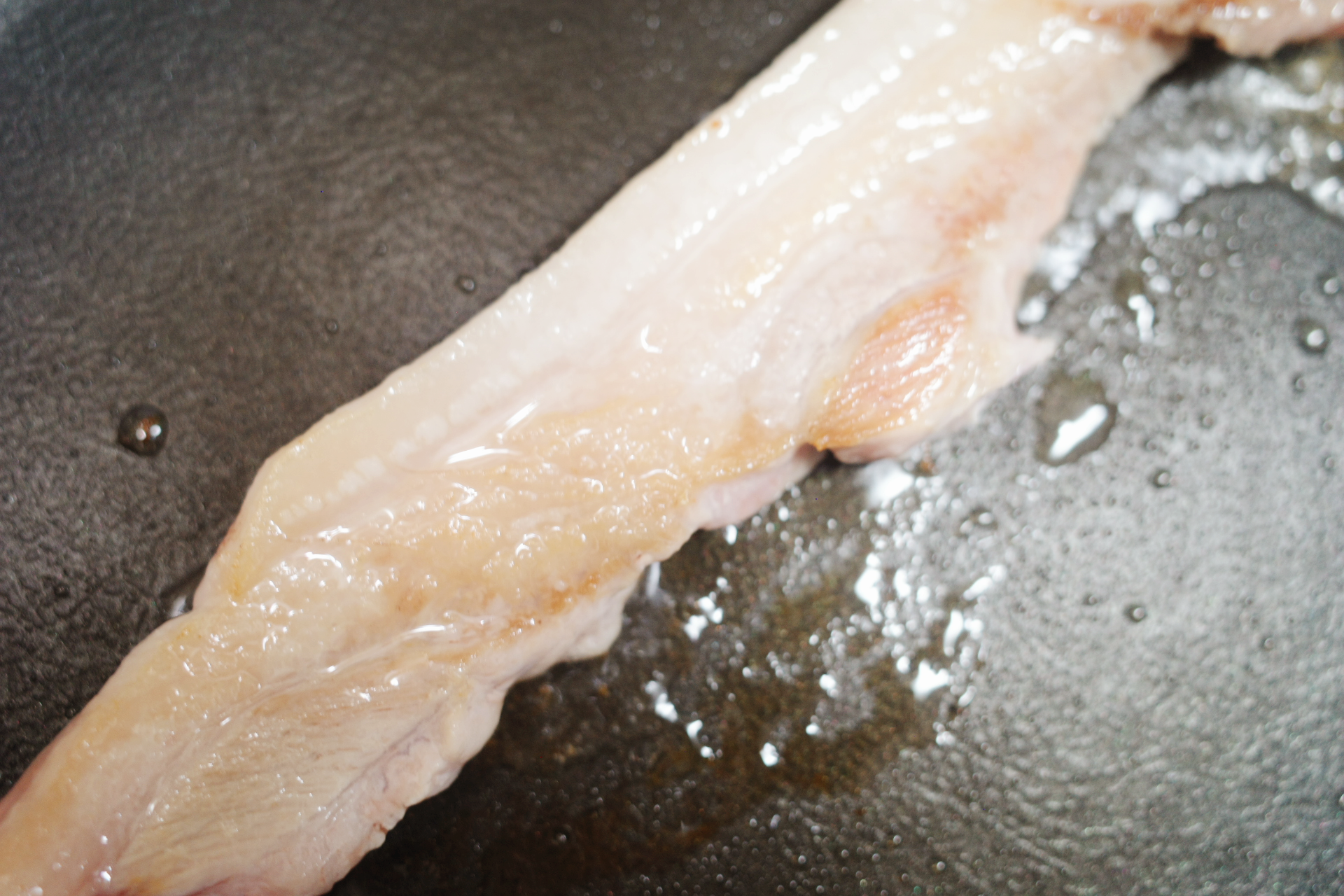 2️⃣ 중약불로 예열한 팬에 삼겹살을 올리고 노릇노릇하게 앞뒤로 5~7분 정도 구워줍니다.