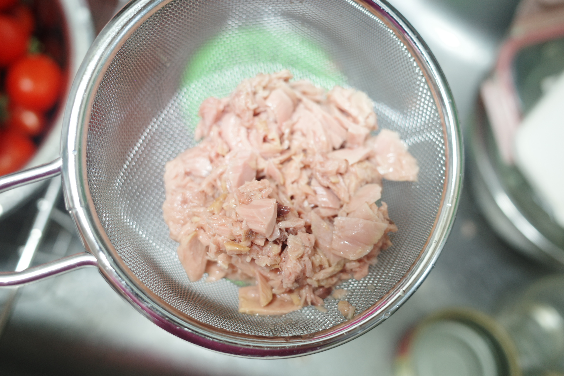 1️⃣ 참치캔은 체에 밭쳐 기름을 쫙 뺀 후, 볼에 담아주세요.