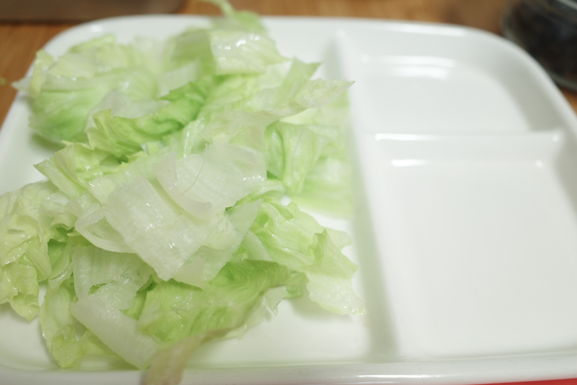 1️⃣ 양상추는 흐르는 물에 깨끗이 씻어 한입 크기로 찢습니다.