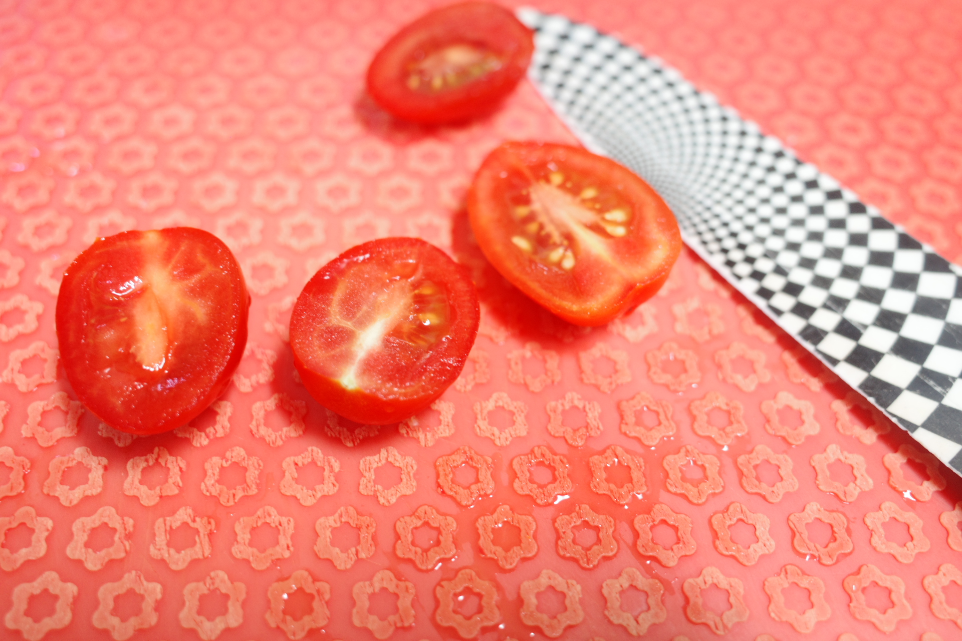 1️⃣ 방울토마토는 반으로 자릅니다.